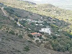 Der Ort liegt 1 km östlich der Landstraße von Pachia Ammos und Ierapetra von Pachia Ammos etwa 5 und von Ierapetra circa 10 km entfernt. Nach Kato Chorio im Süden sind es 6 km. 600 Meter nordöstlich des Dorfes liegt Chalasmenos, eine Siedlung aus minoischer Zeit und 900 Meter nordöstlich befindet sich die Schlucht von Cha.