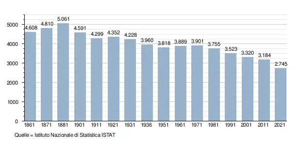 - ↑ Bilancio demografico e popolazione residente per sesso al 31 dicembre 2024. ISTAT. (Bevölkerungsstatistiken des Istituto Nazionale di Statistica, Stand 31. Dezember 2024).