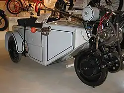 Im Prinzip war das hintere Teil des Fahrzeugs ein Motorrad mit Motor, und das Vorderteil war ein Beiwagen, der tief zwischen den beiden Vorderrädern angeordnet war.
