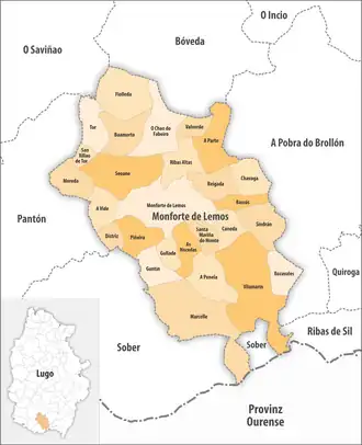 Die Gemeinde Monforte de Lemos ist in 27 Parroquias gegliedert: