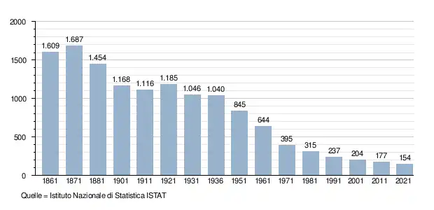 Seit der Volkszählung von 1871 hatte die Gemeinde einen Bevölkerungsrückgang von 90 % zu verkraften.