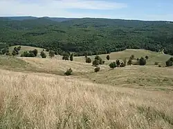 ![]() Aussicht von den Hängen des Back Allegheny Mountain, in östliche Richtung. Zu erkennen sind der Allegheny Mountain auf mittlerer Distanz und der Shenandoah Mountain in weiter Ferne. Letzterer befindet sich im George Washington National Forest von Virginia. | ||