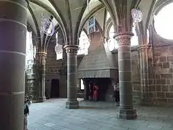 Hinter dem Chor der Unterkirche befindet sich eine Zisterne zur Speicherung von Regenwasser, das von den Dächern des Chores und der Abteikirche hierhin abgeleitet wurde. In der Bucht des Mont-Saint-Michel fällt zwar ausreichend Regen, der jedoch ohne eine Zisterne auf der Bergspitze nicht zur Verfügung stand. Einen Brunnenschacht durch den harten Fels zu treiben war viel zu aufwendig; außerdem hätte man wohl nur versalzenes Wasser zutage fördern können.