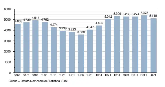 - ↑ Bilancio demografico e popolazione residente per sesso al 31 dicembre 2024. ISTAT. (Bevölkerungsstatistiken des Istituto Nazionale di Statistica, Stand 31. Dezember 2024).