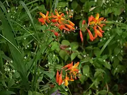 • Rispen-Montbretie oder Hohe Montbretie (Crocosmia paniculata (Klatt) Goldblatt), sie kommt in Südafrika vor.[3]