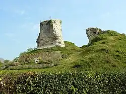 - Die Ruine des Donjon aus dem 12. Jahrhundert. Auf eine Restauration in der Moderne wurde bewusst verzichtet. Der Hügel unter dem Bergfried wurde allerdings stabilisiert, um einem Erdrutsch vorzubeugen. Hinter dem Donjon zieht sich eine Befestigungsmauer in Richtung Wald. Diese ist allerdings von außen nicht einsehbar und der Zutritt zum Gelände ist untersagt. Zwei Mären ranken sich um den Ort: Zum einen sollen ehemalige Mönche von Montchauvet einen Schatz unter dem Donjon vergraben haben und zum anderen sollen Hugenotten Münzen und andere Wertgegenstände in einem Versteck im Dorf gehortet haben.