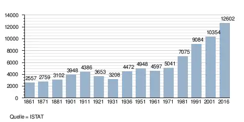 - ↑ Bilancio demografico e popolazione residente per sesso al 31 dicembre 2024. ISTAT. (Bevölkerungsstatistiken des Istituto Nazionale di Statistica, Stand 31. Dezember 2024).
