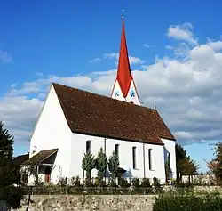 Die katholische Pfarrkirche Johannes Baptista stammt in ihrer jetzigen Erscheinungsform mehrheitlich aus dem letzten Viertel des 17. Jahrhunderts. Nur der spätgotische Chor ist aus einem Vorläuferbau um 1500 erhalten geblieben. Bei der Gesamtrestaurierung 1958/59 wurden Fundamente der ersten Bauphase, einer einfachen Saalkirche aus dem ausgehenden 8. Jahrhundert und ein späterer südlicher Anbau (um die Jahrtausendwende) ergraben. Die Kirche dürfte ursprünglich eine königliche Eigenkirche und das kirchliche Zentrum des nahe gelegenen Reichshofes Kriessern gewesen sein. Im 13. Jahrhundert verlor die Kirche ihren Status als königliche Eigenkirche; das Patronat kam an die Herren von Ems, denen verschiedene andere Patronatsinhaber aus dem regionalen Adel folgten.[5] Während der Reformationszeit blieb die Kirche katholisch. Zuletzt wurden Ende der 1990er-Jahre Renovationsarbeiten durchgeführt.