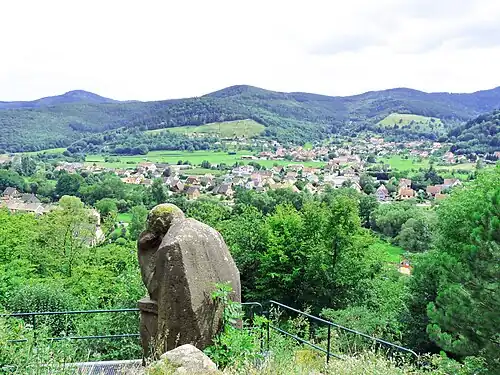 Das Denkmal steht nördlich des westlichen Zweiges des Ortes etwa 40 Meter über dem Ortsniveau[1] und ist eine Station auf einem Informations-Rundweg, dem Gedenkweg Albert Schweitzer.[2] Von der Stelle des Denkmals hat man einen weiten Blick über den Ort und die Höhen der Vogesen jenseits des Tales. Auf dem Weg zu dieser Stelle dürfte der Entschluss Albert Schweitzers gefallen sein, ein Studium der Medizin zu beginnen und dann nach Lambarene in Afrika zu gehen.[2]