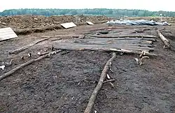 Durch Ausgrabung freigelegter Abschnitt des Moorweges, 2020