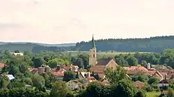 - Die Pfarrkirche St. Peter und Paul ist die Nachfolgerin der 1848 durch einen Brand zerstörten, von 1734 bis 1738 erbauten Pfarrkirche. Sie wurde ab 1850 erbaut, der Rohbau war 1853 vollendet. Am 30. August 1859 weihte Bischof Ignatius von Senestrey die neue Kirche, die 1861 ihre Turmuhr erhielt. Die damalige Ausstattung wurde in der Mitte des 20. Jahrhunderts entfernt.