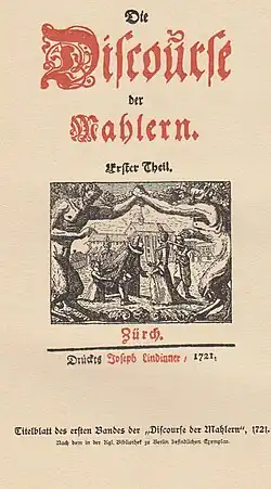 - Discourse der Mahlern, herausgegeben von Johann Jakob Bodmer und Johann Jakob Breitinger in der Schweiz (1721 bis 1723); Folgeblatt: Maler der Sitten (1746).
