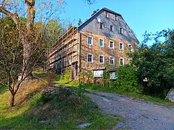 Die Mortelmühle ist das älteste historisch belegte Gebäude im Mortelgrund. Seit dem 14. Jahrhundert gehörte sie zum Besitz der Schönbergschen Linie auf Purschenstein und war die größte Mühle in der Herrschaft.[11] Die Innungsordnung der Saydaer Bäcker aus dem Jahr 1443 legte fest, dass alle Bauern im Umkreis einer Meile ihr Mehl im Mortelgrund zu mahlen hatten. 1639 wurde der Mahlzwang erneuert.