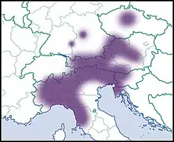 Die Art kommt überwiegend in den Südalpen, Norditalien und in Istrien vor. Nördlich der Alpen sind nur wenige Vorkommen in Bayern (Allgäuer und Berchtesgadener Alpen, Altmühltal), in Österreich und in Tschechien bekannt.