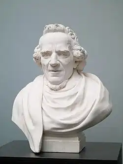 Moses Mendelssohn (1771, Porträt von Anton Graff, Kunstbesitz der Universität Leipzig) Gipsbüste von Moses Mendelssohn von Antoine Tassaert (Original von 1785)