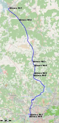 Verlauf des Moskau-Wolga-Kanals mit den 8 Schleusen