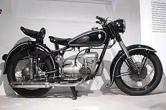 Mit der einfachen, schlitzgesteuerten Spülung konkurrierten mehr oder weniger komplizierte Bauweisen mit Ladepumpe, Kompressor, Drehschieber und anderem. In Zschopau verfolgte man für die Serienfertigung konsequent die kostengünstig herzustellende Dreikanalspülung, was sich für die angestrebte Massenmotorisierung als richtig erwies. Darüber hinaus wurden motorradtypische Anbauteile, wie Mittelständer, Innenbacken-Trommelbremsen sowie Lenkungs- und Schwingungsdämpfer entwickelt und verbessert. Ziel war ein allgemeingültiges DKW-Konzept.[14]