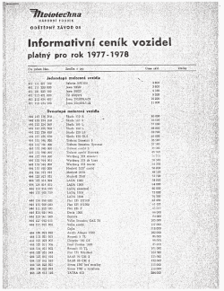 Mototechna importierte in die Tschechoslowakei Fahrzeuge der Marken Trabant, Wartburg, Simca, GAZ, Moskwitsch. Später kamen auch die Marken Fiat, Renault, Ford oder Saab ins Angebot. Chrysler und Toyota hielten in den 1970ern und -80ern Einzug in die staatliche Preislisten für Kraftfahrzeuge.