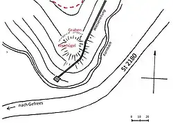 | Erhaltungszustand | Kernhügel, Graben | |