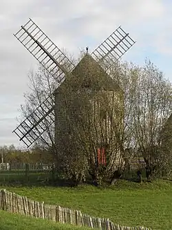 Die Getreidemühle aus Bruchsteinmauerwerk und mit Kegeldach ist eine von drei Mühlen in Cherrueix, die wegen des starken Windes in der Bucht von Mont-Saint-Michel gebaut wurden. Alle drei Mühlen besitzen die gleiche Bauweise.