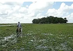 Region eins: Nördlich der Stadt Santa Ana del Yacuma und westlich des Río Mamoré River befindet sich ein Gebiet mit wassergesättigten mageren Böden. Viele große landwirtschaftliche Hochflächen, die zur Entwässerung und Verbesserung der Böden notwendig waren, erinnern an ihre prähistorischen Bewohner. Obwohl es in dieser Region wahrscheinlich eine zahlreiche prähistorische Bevölkerung gab, gibt es kaum Hinweise auf eine komplexe Gesellschaftsstruktur.[16]