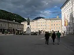 - ↑ Zur Geschichte des Gebäudes siehe Café Glockenspiel. In: Salzburger Nachrichten: Salzburgwiki. Abgerufen am 28. November 2023.
