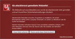 Warnmeldung über eine „als attackierend gemeldete Website“ im Firefox 15