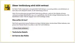Warnmeldung wegen Zertifikatsfehler aus Firefox 10.0.2