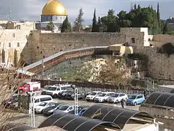 Die Mughrabi-Brücke schafft die Verbindung vom Platz bei der Klagemauer zum Tempelberg. Sie ist in der Regel von Sonntag bis Donnerstag jeweils vormittags geöffnet. Die Brücke wird von Touristen und israelischen Sicherheitskräften benutzt, um auf den Tempelberg zu gelangen, während die übrigen Tore des Tempelberges für Menschen muslimischen Glaubens bestimmt sind. Der Tempelberg mit dem Felsendom als zentralem Ort steht unter der Verwaltung einer jordanischen Waqf. An der Stelle, an der heute der islamische Felsendom steht, befand sich bis zum Jahr 70 n. Chr. der jüdische Tempel. König Herodes vergrößerte den Tempelbezirk, indem er einen Teil des Felsplateaus aufschütten und das komplette Areal ummauern ließ. Ein Teil der Westmauer bildet die heutige Klagemauer, die im Judentum eine religiöse Stätte hohen Ranges darstellt.