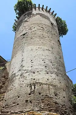 Der Bau des von den Orsini im 13. oder 14. Jahrhundert veranlassten hohen zylindrischen Turms, auch Torre Orsini genannt, überragt eine römische Zisterne. Er zeichnet sich durch Schießscharten, ein gotisches trilobales Beobachtungsfenster und einen Kronenstreifen aus. Er kontrollierte den mittelalterlichen Zugang zum Dorf.