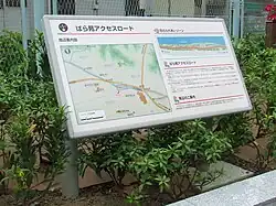 ), wo sich die Endstation der Monorail über dem Mittelstreifen der Zugangsstraße befand. Die 1,1 km lange Strecke folgte in südwestlicher Richtung dem Nikaryō-Kanal, der parallel zur Präfekturstraße 9 verläuft. Nach einer engen Kurve überquerte sie beide und endete in der Station Mukōgaoka-Yūen-seimon (