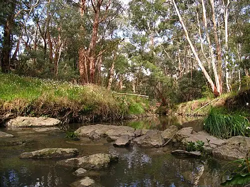 Der Bach ist einer der wenigen Wasserläufe im Stadtgebiet von Melbourne, der fast auf seiner ganzen Länge von ursprünglichem oder wiederangepflanztem Buschland umgeben ist und ein wichtiges Ökosystem darstellt. Etwa 80.000 Menschen leben im Einzugsgebiet des Baches. Das Buschland am Wasserlauf stellt ein Habitat für etliche Tierarten dar, z. B. das Schnabeltier, die Goldbauch-Schwimmratte, Koalas, eine Eulenart (Powerful Owl), den Rotrückenreiher, die Weißflügelkrähe und der Gelbohr-Rabenkakadu.