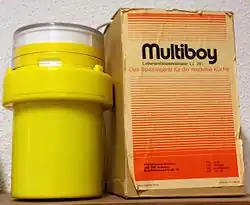 - ↑ Lüdtke: Lebensmittel spielend zerkleinert, in: Der Fachberater Haushaltwaren 1986, Heft 1, S. 13 (Lebensmittelzerkleinerer Multiboy LMZ 252 – Elektronikvariante, Joghurtbereiter Majomat) in: Bibliografie – Dokumentationszentrum Alltagskultur der DDR ( des vom 4. März 2016 im Internet Archive) Info: Der Archivlink wurde automatisch eingesetzt und noch nicht geprüft. Bitte prüfe Original- und Archivlink gemäß Anleitung und entferne dann diesen Hinweis.