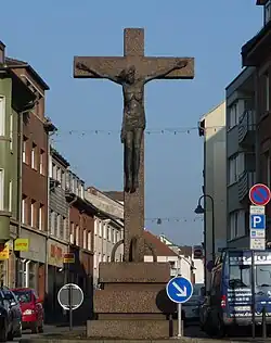 Das Kleine Kreuz wurde zusammen mit der katholischen Kirche im Jahr 1943 zerstört. Die Inschrift auf dem Sockel lautete: