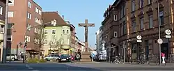 Das 3,50 m hohe Große Kreuz aus dem Jahr 1757 erinnerte wohl an die Überschwemmungen jener Jahre, bei denen der Rhein Mundenheim fast zerstörte. Die Inschrift auf der Vorderseite lautete:
