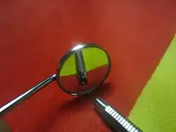 Ein Mundspiegel, auch Dentalspiegel genannt, ist ein zahnmedizinisches Instrument zur Untersuchung der Mundhöhle und insbesondere der Zähne.[1] Es besteht aus einem Griff und einem in der Regel abschraubbaren Spiegel. Als Material für die Griffe in verschiedenen ergonomischen Formen sind Edelstahl und Kunststoff gebräuchlich.