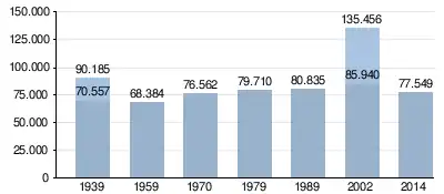 Anmerkung: Volkszählungsdaten. Stadt Gori von 1950 bis in die 1990er-Jahre aus Rajon ausgegliedert, erneut seit 2014 aus Munizipalität (Angabe 1939 und 2002 mit und ohne Stadt).
