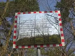 Im Jahr 2000 lud dann die Senatsverwaltung für Stadtentwicklung neun Künstler zu einem Wettbewerb für die Denkzeichen zur Erinnerung an die Ermordeten der NS-Militärjustiz am Murellenberg ein. Die Jury entschied sich im Jahr 2001 für den Entwurf der argentinischen, in Berlin lebenden Künstlerin Patricia Pisani. Ausgehend von der Glockenturmstraße stellte Patricia Pisani entlang des Waldweges 104 Verkehrsspiegel auf, deren Zahl sich hin zur wahrscheinlich authentischen Erschießungsstätte am Munitionsdepot verdichtet.[41]