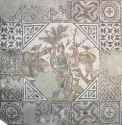 - Das „Mosaik des Orpheus“ (Mosaïque d’Orphée) wurde 1934 von MArcelin, Boyer freigelegt. Es wird auf das 3. bis 4. Jahrhundert datiert.[24]