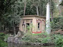 Am Ufer eines Teiches befindet sich ein kleiner Tempel im neo-ägyptischen Stil, während der mit einer Reihe von Skulpturen und klassischen Büsten geschmückte Weg ein typisches Element des bereits bestehenden italienischen Gartens ist. Einen spätromantischen Akzent setzt die Ruine eines venezianisch-gotischen Innenhofes aus weißem Marmor mit einem Brunnen in der Mitte. Typisch florentinisch sind auch die zahlreichen Terrakottafiguren, die im Park verstreut stehen.