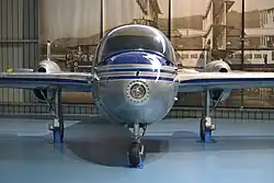 - Das 1978 für die US Air Force als kostengünstiges Schulflugzeug mit Strahlantrieb entworfene Modell, war das letzte Flugzeug bei dem im Modellnamen der Name Caproni auftaucht. Der Erstflug erfolgte 1980, ohne dass es anschließend in Serienproduktion ging. Bei der ausgestellten Maschine handelt es sich um einen der fertiggestellten Prototypen.[20]