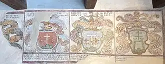 Die Fassade ist vollständig mit den Wappen des Bleniotales, der drei Urkantone und der Vögte bedeckt, die rund 300 Jahre lang im Tal regierten. Die zahlreichen Wappen im Innern aus dem 17. Jahrhundert stammen von lokalen Patriziern, die im Dienst der Vögte standen.[5]