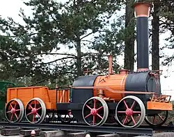 - Nachbau (2002) der ersten russischen Dampflokomotive, die 1833–1834 von Jefim und Miron Tscherepanow gebaut wurde