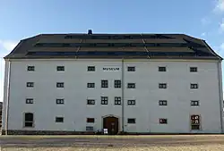 Das 1806 bis 1809 auf Anraten von Bergmeister von Trebra errichtete Gebäude wurde zunächst als Getreidespeicher genutzt.[3] Während der napoleonischen Befreiungskriege wurde das Haus 1813 bis 1814 als Lazarett genutzt. Ab 1858 befand sich im Gebäude die Militärkammer der Marienberger Garnison, ab 1873 die der ortsansässigen Unteroffiziersschule. Im Jahr 1920 ging das Gebäude in das Eigentum des Sächsischen Kriegsministeriums über. In den 1920er-Jahren befanden sich hier die Produktionsstätten der Marienberger Fahrzeugfabrik MAFA der Gebrüder Sättler sowie die Schokoladenfabrik Alfred Hertel. Im Jahre 1936 ersteigerte die Stadt Marienberg das Gebäude für 1700 Reichsmark. Bereits 1939 wurde es der Wehrmacht übergeben, nachdem es in der Zwischenzeit eine Segelfliegerschule, den Grenzschutz und einen Lehrsaal für eine NS-Motorradstaffel beherbergte.