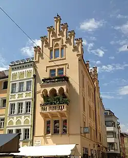 An der Nordostecke zum Obstmarkt befindet sich das Torgglhaus, direkt gegenüber das ehemalige Gasthaus Zur Sonne.