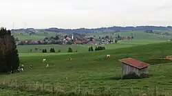 Das Pfarrdorf liegt im Allgäu, umgeben von Feldern und Wiesen, etwa 9 km westlich von Altusried an der Kreisstraße OA 16. Die Stadt Kempten ist 18 km, die Landesgrenze zu Baden-Württemberg 500 m entfernt. Der Fuchshaldenbach fließt durch den Ort.