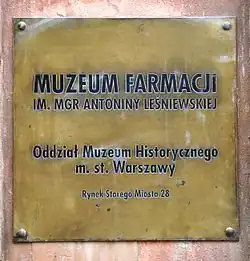 Das Muzeum Farmacji im. mgr Antoniny Leśniewskiej (deutsch: Antonina-Leśniewska-Pharmaziemuseum) befindet sich in der Altstadt von Warschau und ist eine Abteilung des Museums von Warschau. Das Museum ist nach Antonina Leśniewska[1] benannt, einer Pionierin der polnischen Frauenbewegung und der ersten Apothekerin des Landes.