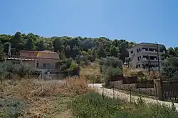 Der Mykenische Friedhof von Kato Almyri befindet sich im Wald hinter den Häusern. Grab XXI liegt zwischen den Häusern.