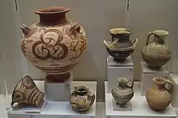 Stais fand auch noch zwei kleinere Kammergräber. Eines enthielt nur einen Skelett in hockender Position. Den Schädel fand er zwischen den Unterschenkelknochen. Anhand der Beigaben, einer bronzene Spange und zweier Spinnwirtel, vermutete er, dass hier eine Frau beigesetzt worden war.[5] Die Funde aus den Gräbern stammen aus der Zeit vom Ende des Späthelladikum III A2 bis SH III C (1340–1050 v. Chr.)[6]