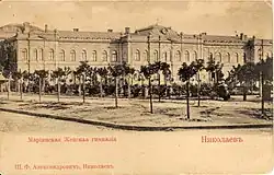 - ↑ a b c Elena M: История первой женской гимназии в Николаеве. In: mykolaiv.one. 24. Mai 2022, abgerufen am 29. November 2023 (russisch, deutsch: „Geschichte des ersten Frauengymnasiums in Nikolaev“).
